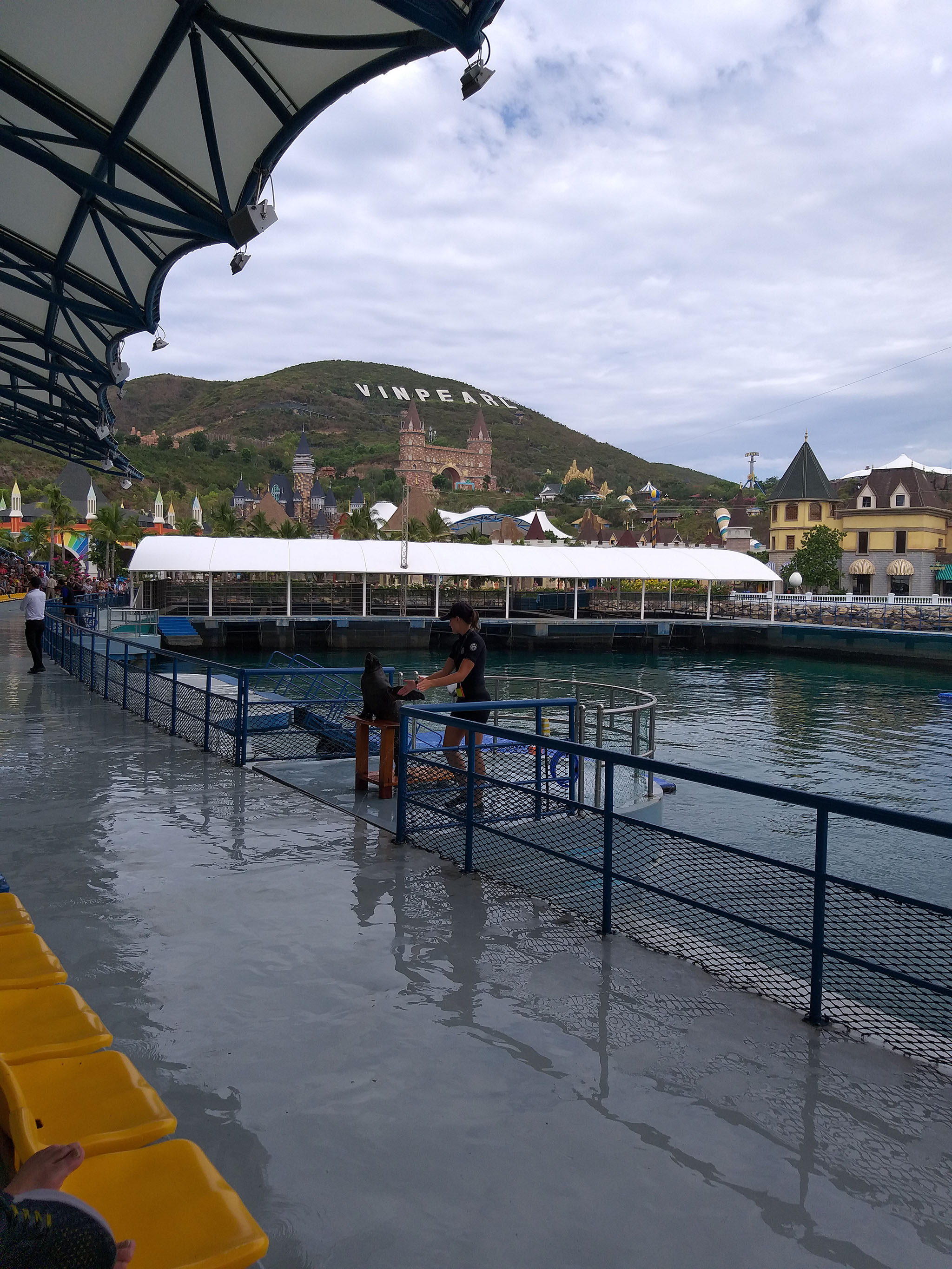 Hotgirl của đoàn cũng tranh thủ bắt phụ huynh làm cho vài tấm ở bến tàu Vinpearl Land.