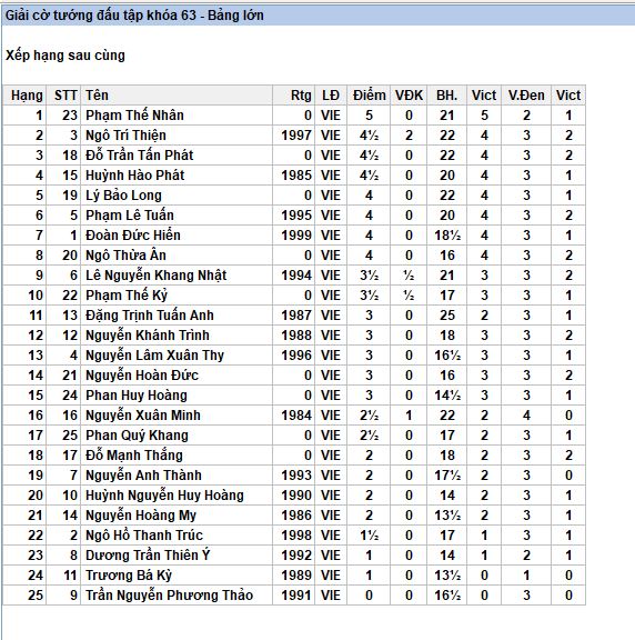Xin được chúc mừng hai nhà vô địch của giải cờ tướng đấu tập khóa 63: Phạm Thế Nhân và Bùi Dư Hữu Khang!!!