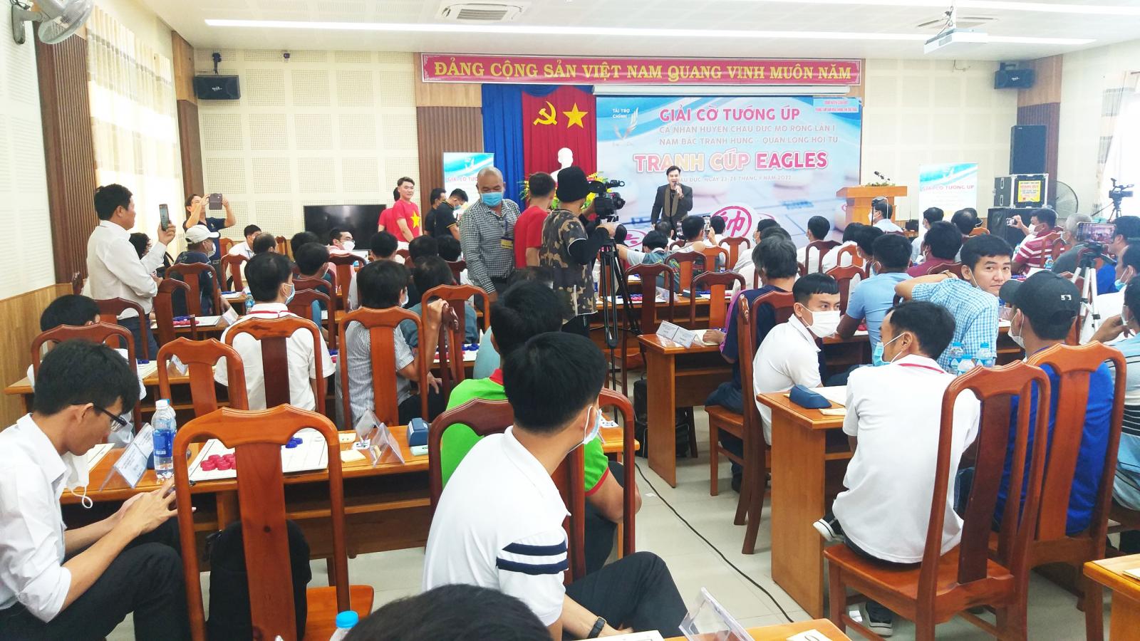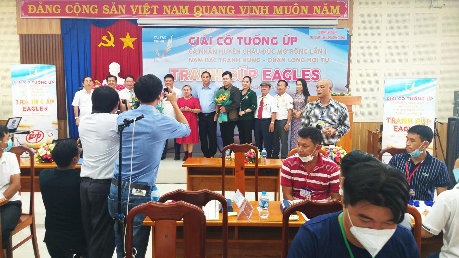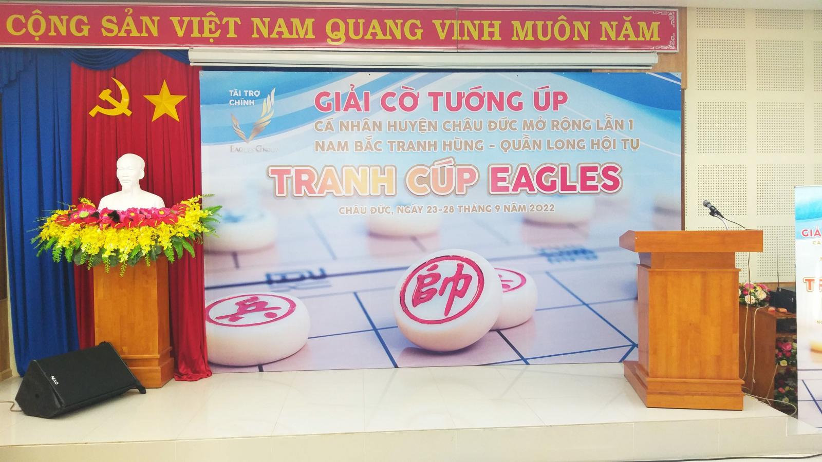 Sáng nay, sau gần 30 phút chờ đợi thì cuối cùng buổi lễ khai mạc giải cờ tướng úp huyện Châu Đức mở rộng lần 1 "Nam Bắc tranh hùng - Quần long hội tụ tranh cúp EAGLES năm 2022 đẵ diễn ra vô cùng long trọng với sự tham dự của các lãnh đạo cao nhất của Huyện Châu Đức.