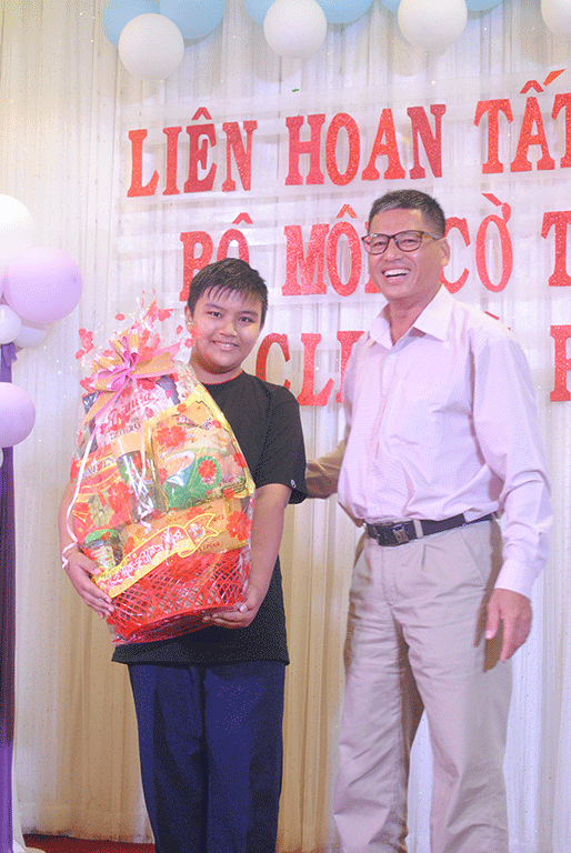 Anh hội trưởng khen thưởng các em xuất sắc: Đào Anh Duy, Ngô Hồ Thanh Trúc, Huỳnh Hào Phát, Ngô Trí Thiện, Nguyễn Lâm Xuân Thy