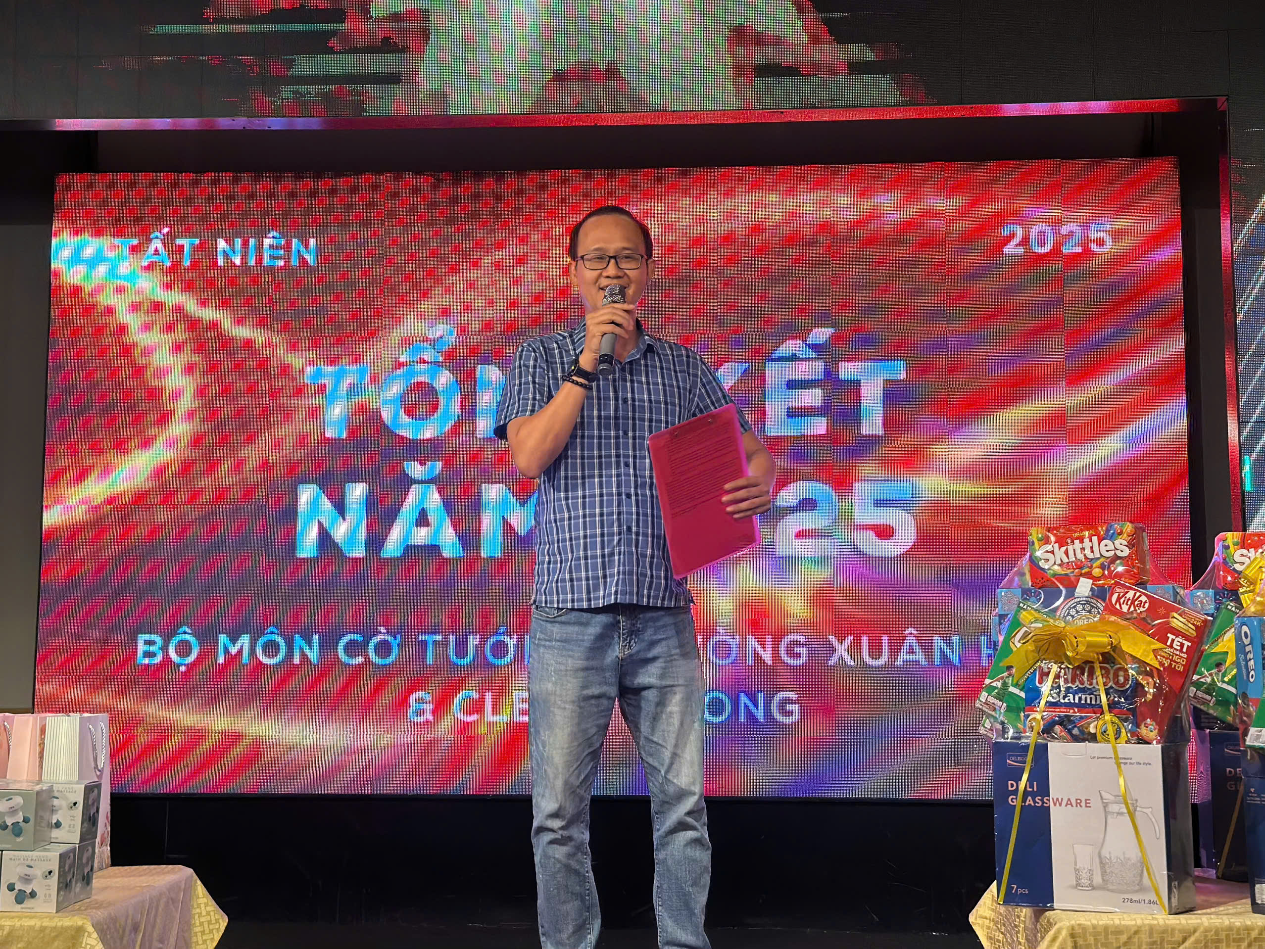 Thầy Bùi Văn Hiếu báo cáo hoạt động bộ môn cờ tướng Phường Xuân Hoà