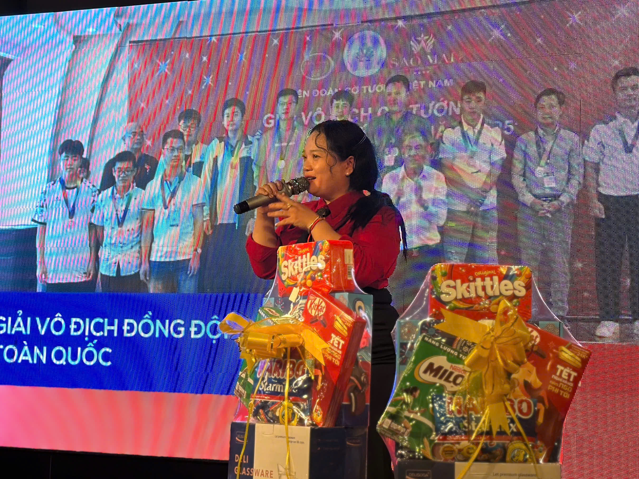 Cô Nguyễn Hoàng Yến trao quà thưởng VĐV xuât sắc tại giải trẻ toàn quốc 2025