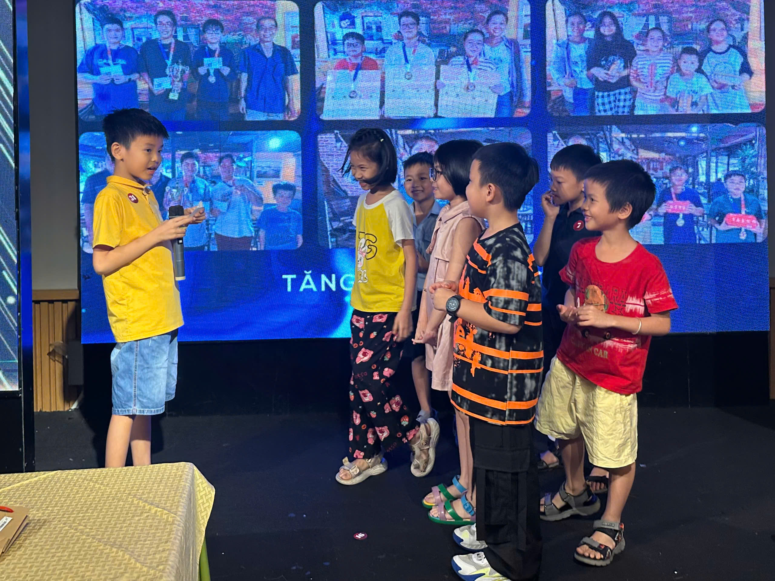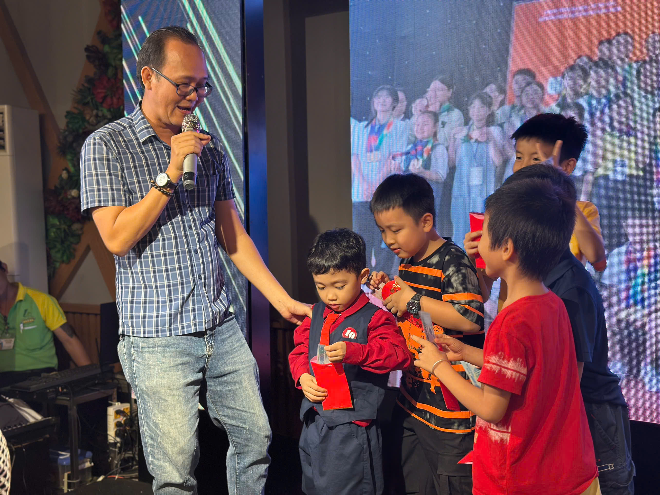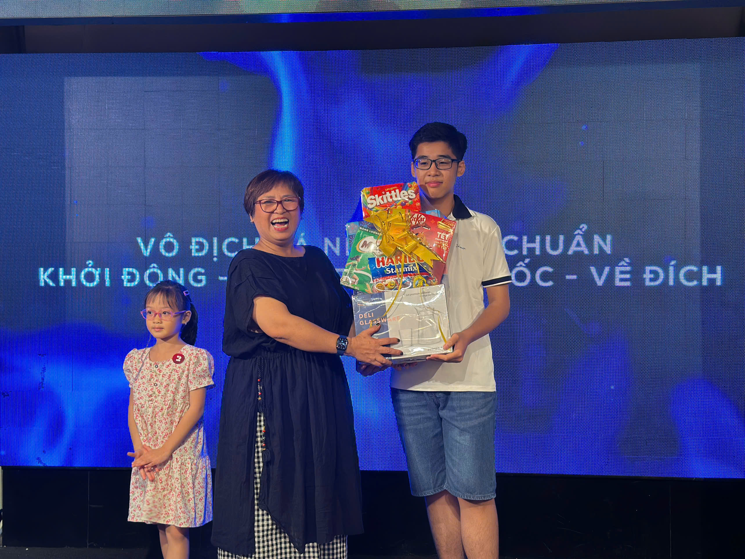 Cô Diệp Bích Phương - Hiệu trưởng trường mầm non Kirin trao quà thưởng VĐV xuất sắc tại giải trẻ toàn quốc 2025