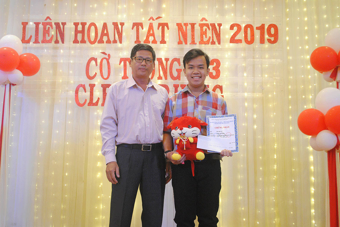 Em Đào Anh Duy được tôn vinh sau một năm hoàn thành xuất sắc việc vào đại học với kết quả cao, thi đấu thành công tại giải trẻ toàn quốc và được Bộ môn tin tưởng trao nhiệm vụ mới - Huấn luyện viên đội cờ tướng Quận 3.