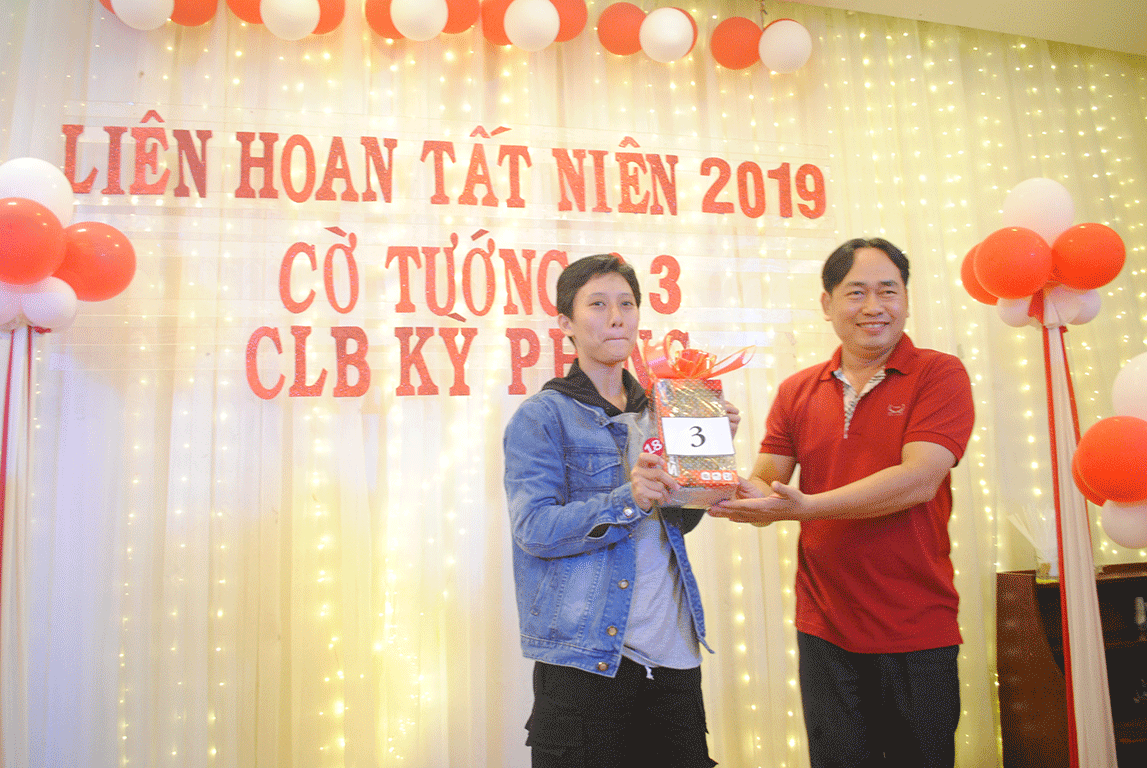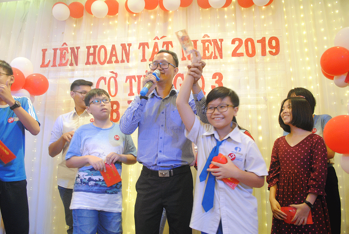 Anh Ngô Văn Trí - Hội trưởng Hội Phụ Huynh trao thưởng cho các kỳ thủ có thành tích xuất sắc năm 2019
