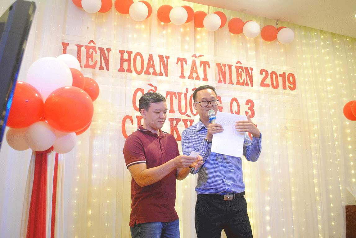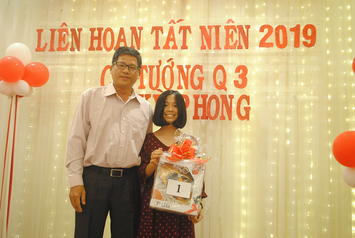 Anh Trần Anh Tuấn - Phụ huynh em Trần Hiệp Phát thể hiện một ca khúc nhạc dân ca Vậy là buổi liên hoan tất niên cờ tướng Quận 3 năm 2019 đã kết thúc. Những dư âm hẵn sẽ còn đọng mãi trong lòng những người đã tham dự. Kết thúc hành trình năm 2019, cờ tướng Quận 3 đã có những lúc khó khăn nhưng trên hết là sự nỗ lực cố gắng vượt qua những khó khăn để hoàn thành công việc một cách tốt nhất. Cảm ơn quý vị phụ huynh đã hỗ trợ hết mình! Cảm ơn các đối tác đã cùng sát cánh! Đặc biệt, cảm ơn các em kỳ thủ - những chiến binh của cờ tướng Quận 3 đã cùng Ban Huấn Luyện chiến đấu cho sự thành công!