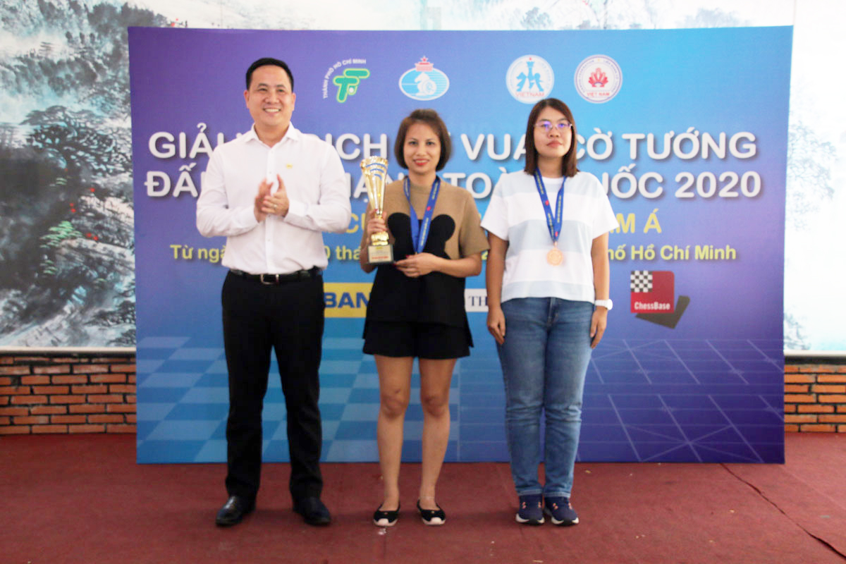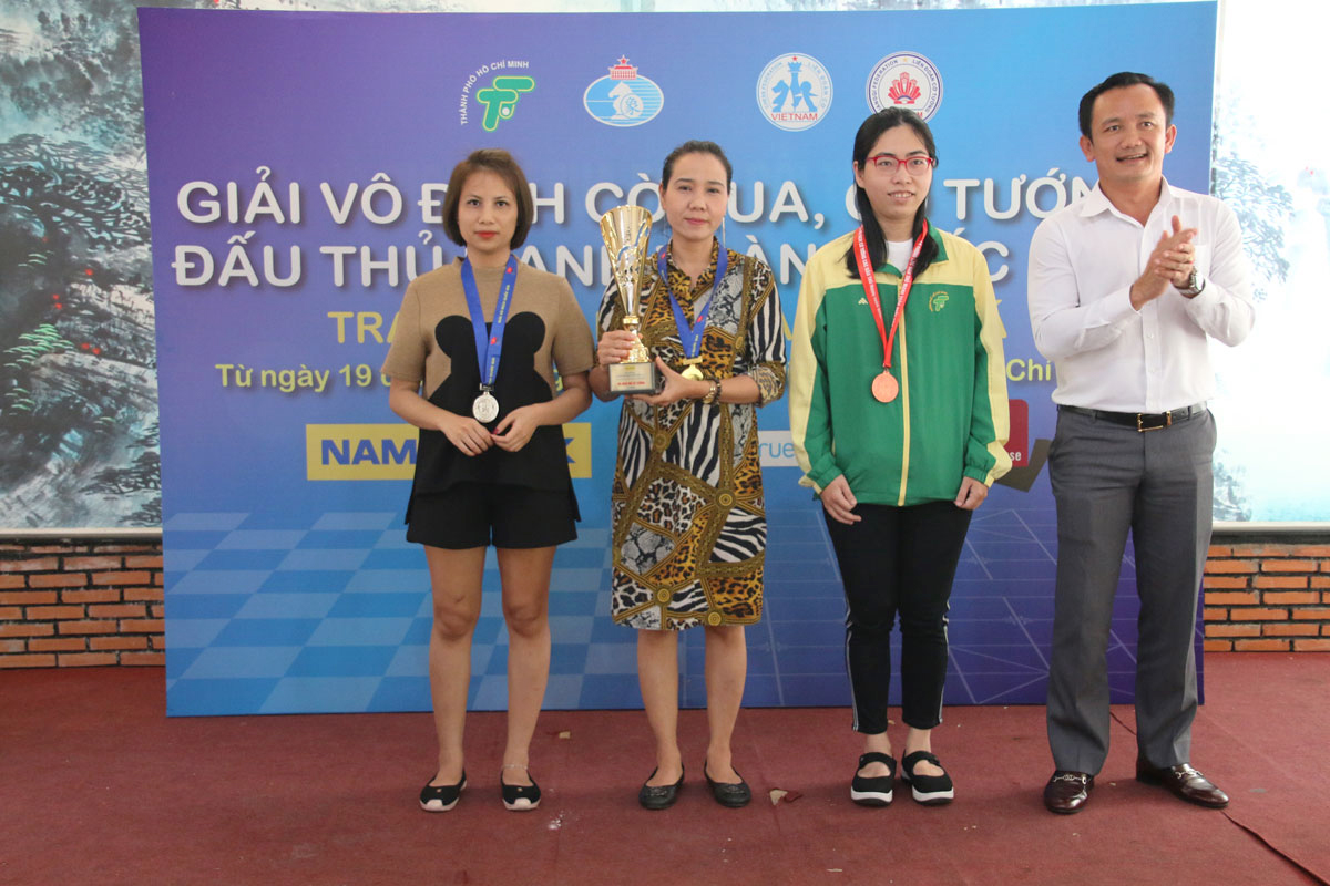 Trao giải nội dung cờ chớp: Hạng nhất: Lê Thị Kim Loan (HNO); hạng nhì: Đàm Thị Thùy Dung (TPHCM); hạng ba: Nguyễn Hoàng Yến (TPHCM), Nguyễn Phi Liêm (BRV).