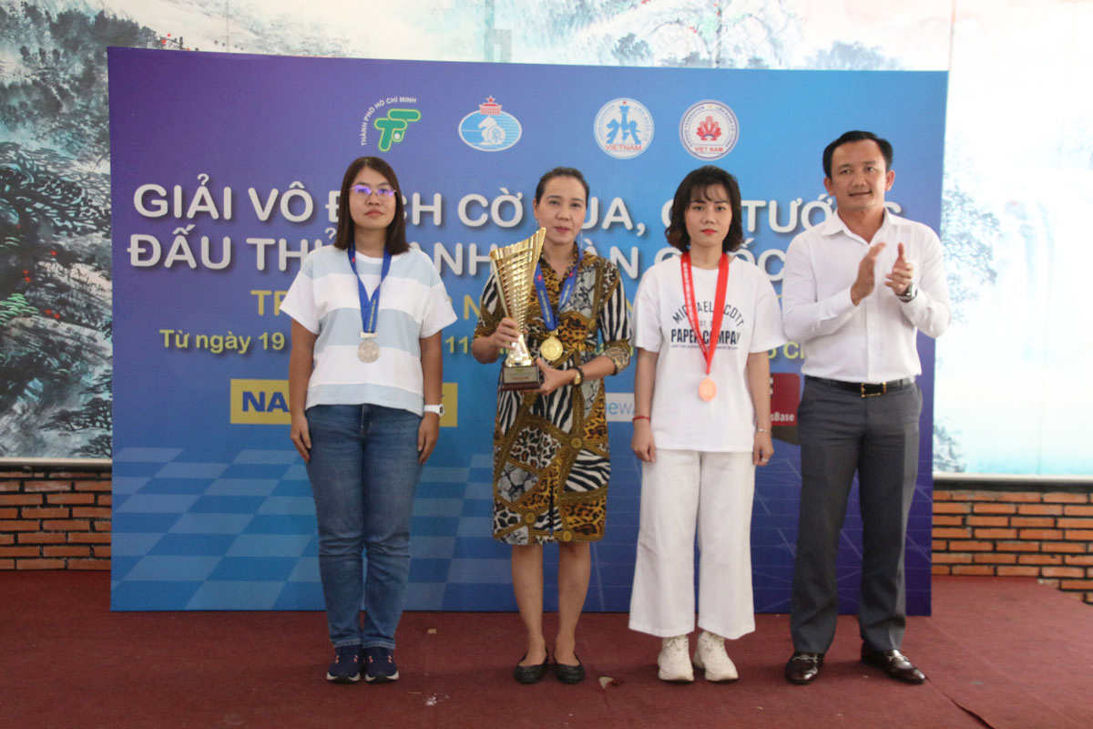 Ở bảng nữ, kỳ thủ Hồ Thị Thanh Hồng của đội tuyển Bình Định đã thể hiện bản lĩnh xuất sắc khi lên ngôi ở hai nội dung cờ nhanh và cờ tiêu chuẩn. Ở nội dung cờ chớp, chức vô địch thuộc về kỳ thủ Lê Thị Kim Loan của đội tuyển Hà Nội. Bên cạnh đó, gương mặt thân quen của Bộ môn Cờ tướng quận 3 tham dự giải đấu này là ĐCQTĐS Nguyễn Hoàng Yến đã đạt thành tích Huy chương Bạc cờ tiêu chuẩn và Huy chương Đồng cờ chớp.