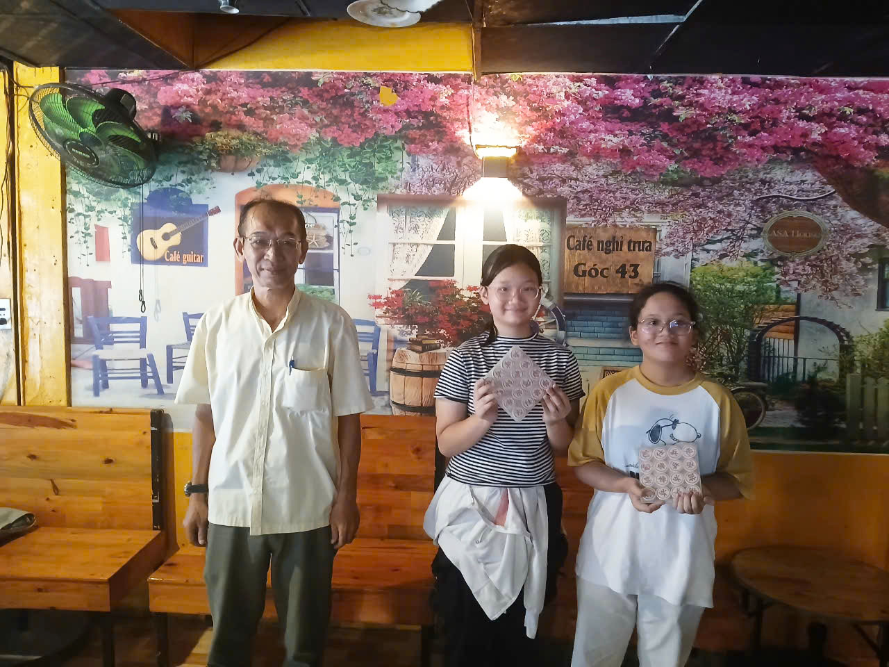 Thầy Nguyễn Thành Dũng trao giải nữ xuất sắc cho 2 kỳ thủ Ngô Minh An và Lâm Hoàng Hải Ngọc