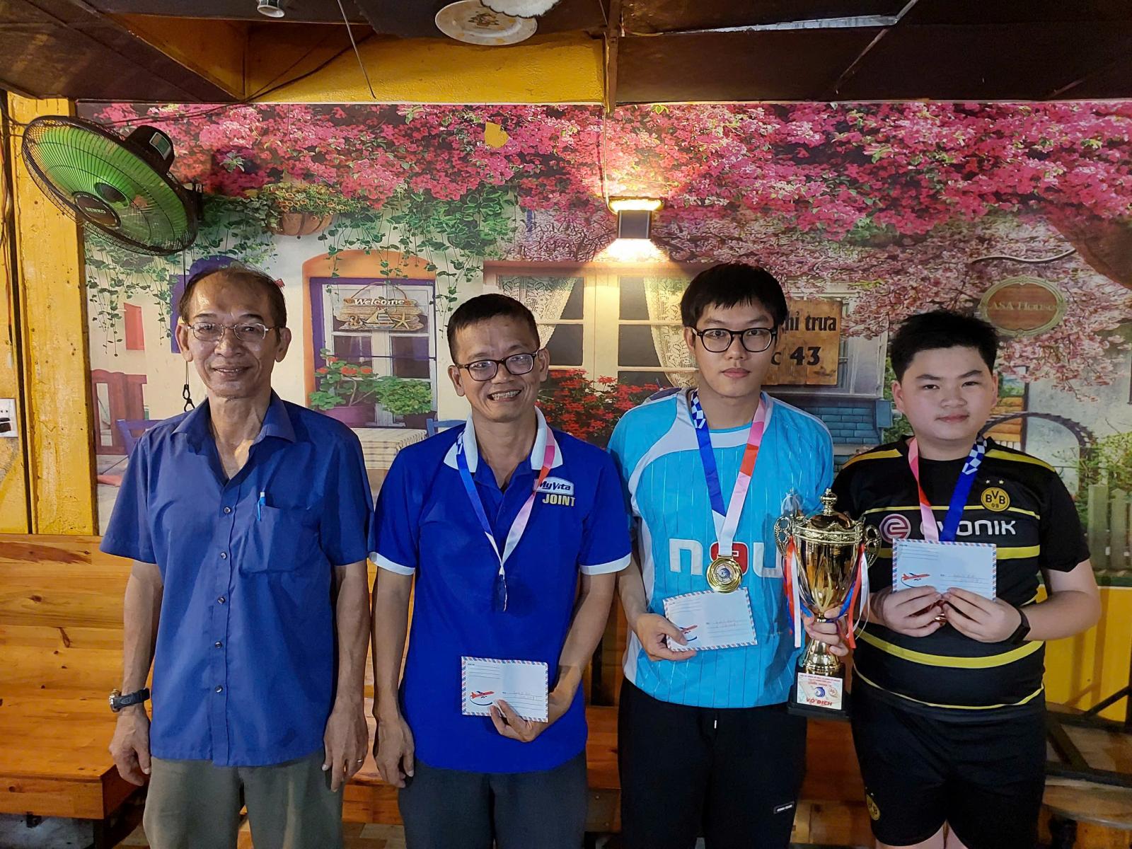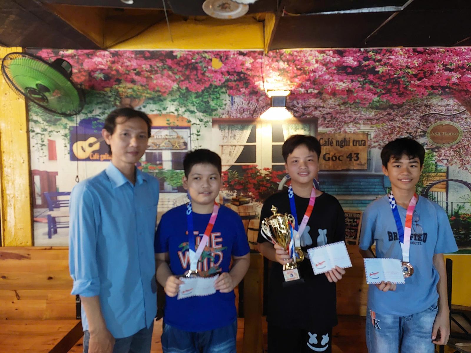 Thầy Nguyễn Thành Dũng trao giải cho các kỳ thủ nhóm Vô Địch