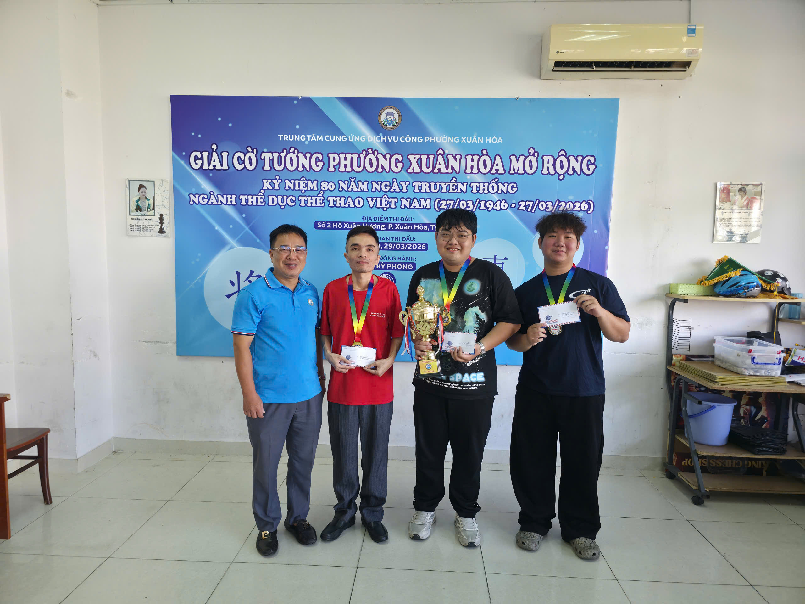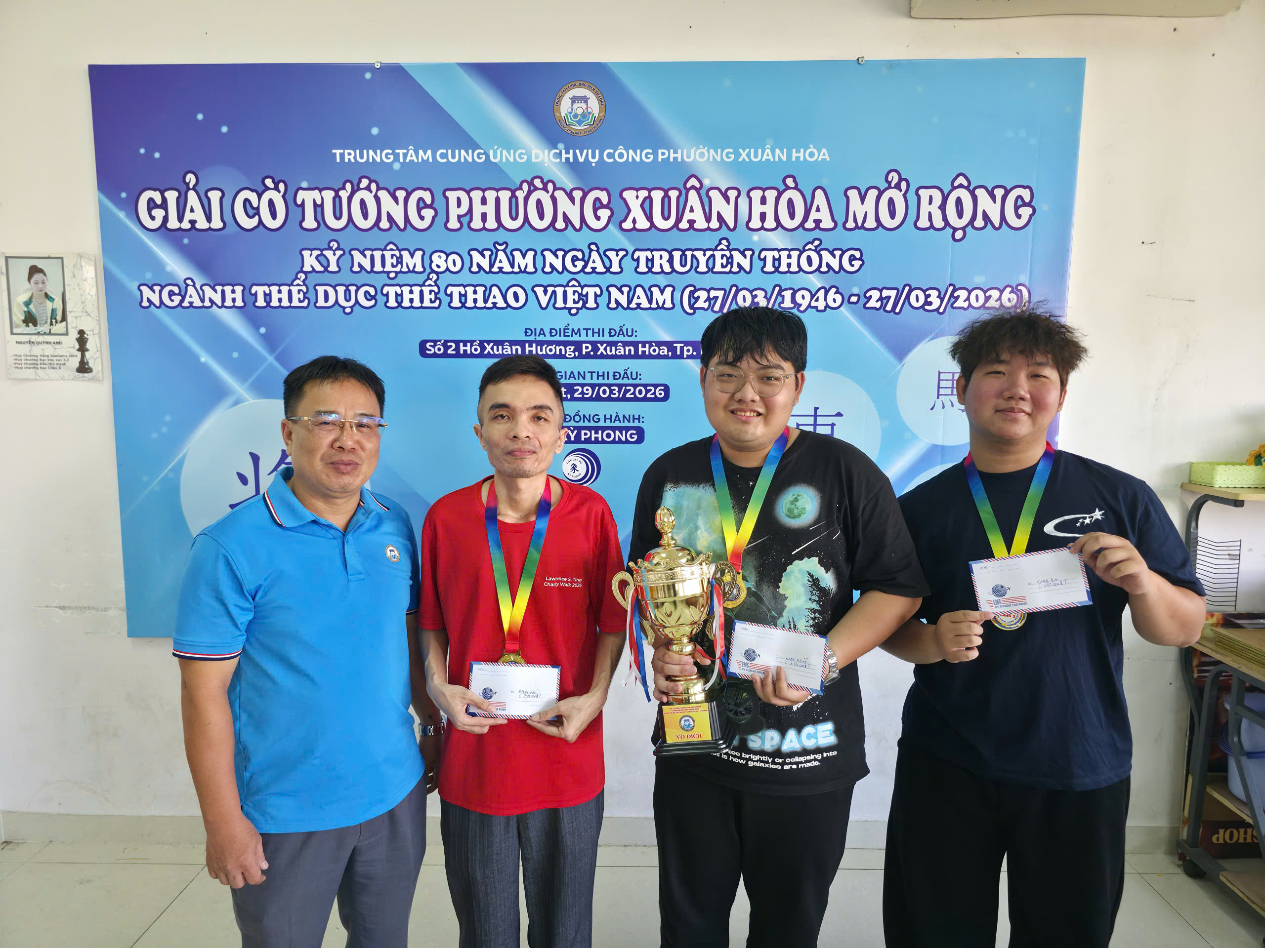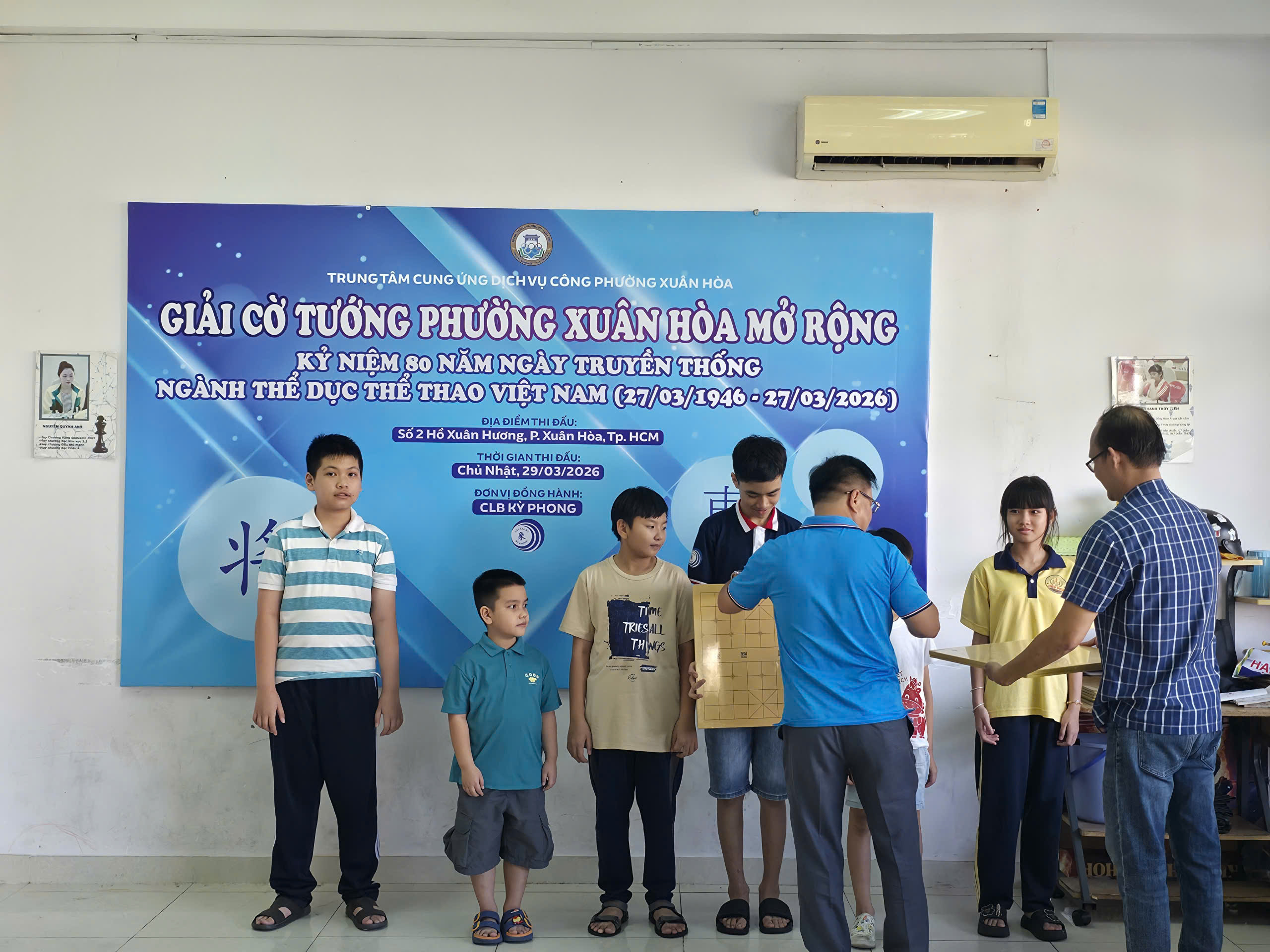 Giải đấu chào mừng 80 năm ngày truyền thống ngành thể thao Việt Nam đã diễn ra tại lầu 3 CLB Hồ Xuân Hương với sự tham dự của gần 40 kỳ thủ ở mọi lứa tuổi. Thi đấu cờ nhanh theo thể thức hệ Thuỵ Sĩ 5 vòng và trận chung kết ở mỗi bảng đấu.