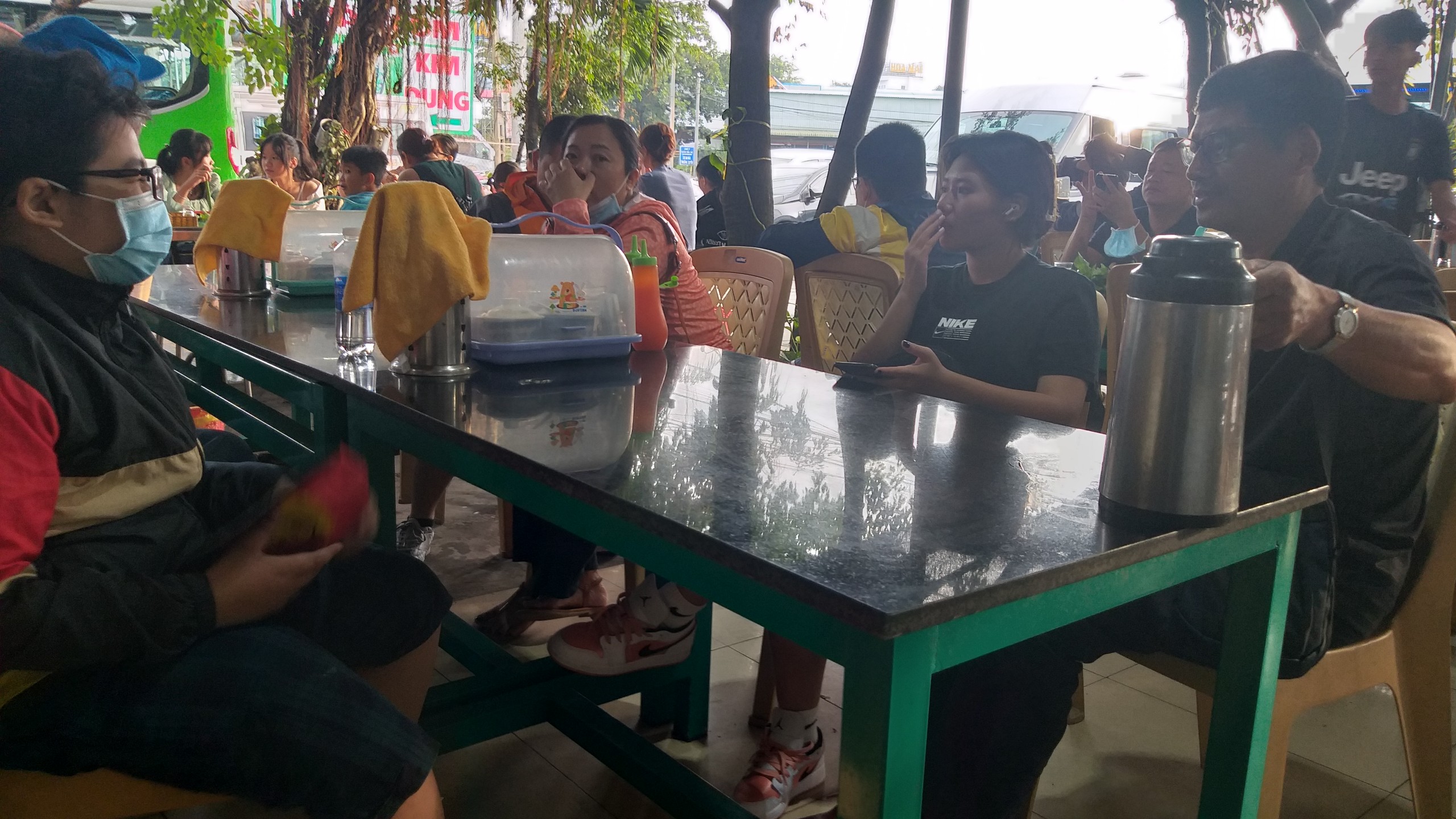 Đoàn dừng lại ăn sáng tại quán phở Hai Tuấn để ăn...bò kho.