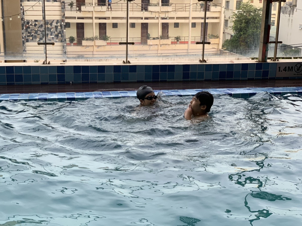 Lan Anh nói: "Mấy cô mấy bác cứ lo chuyên môn đi, việc tập bơi đồ cứ để con lo!"