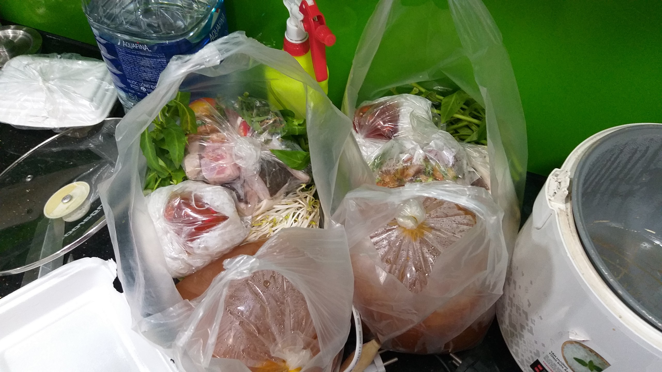 Sau khi ăn cá bóp lúc trưa, theo đúng tiến trình mấy chị đã chuẩn bị cho mọi người 2 cái lẩu cá đuối.