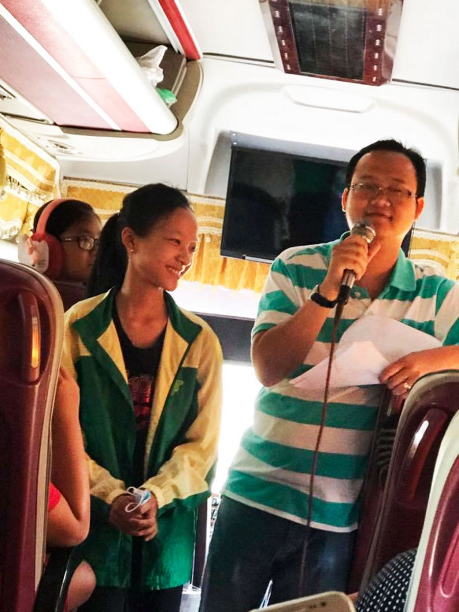 Đúng 5h sáng thứ năm ngày 29/6/2017, mọi người đã có mặt đầy đủ. Xe chở đoàn từ từ lăn bánh. Sau khi dừng chân tại Đồng Nai rồi Bảo Lộc, đoàn thẳng tiến Đà Lạt. Trên đường đi, mọi người cùng nhau thưởng thức những món ăn ngon, nghe những bản nhạc hay, mua những món đồ ưng ý và một hoạt động không thể thiếu chính là cùng nhau có những trận cười trước những câu hỏi đố vui của thầy Hiếu. Mọi người đã không thể nhịn được cười khi bé Trúc trốn chui chốn lủi khi bị thầy Hiếu troll với câu hỏi đố vui :