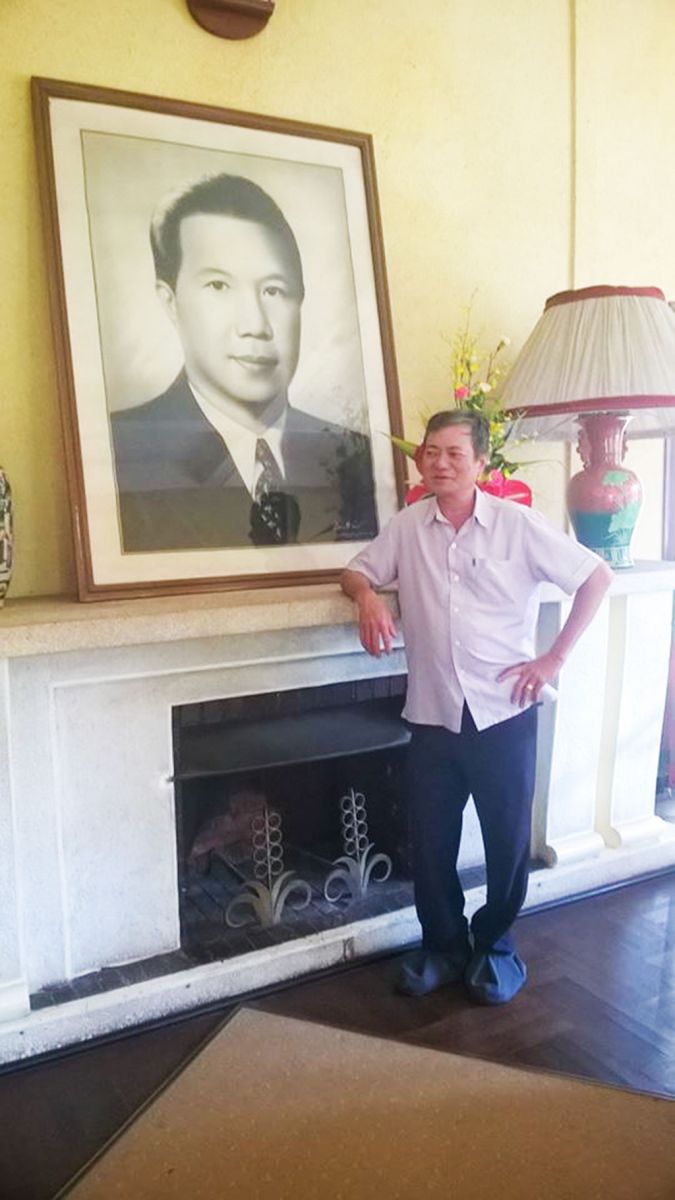 Trong khi bé Thư thăm anh bảo vệ thì phụ huynh bé Thư tranh thủ chụp một tấm với vua Bảo Đại