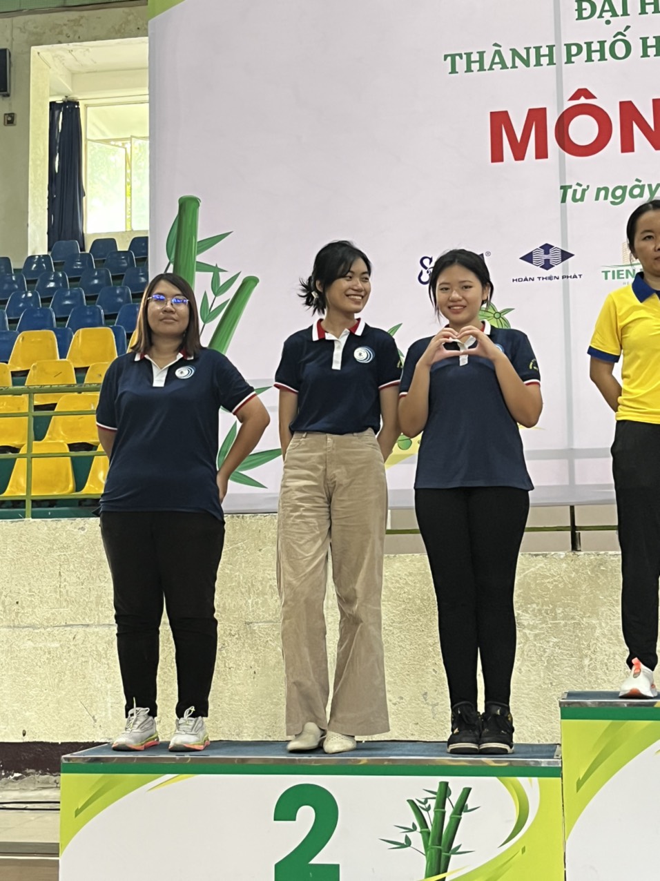 Tấm huy chương vàng quý gia của đội nữ Quận 3 ở nội dung cờ tiêu chuẩn.